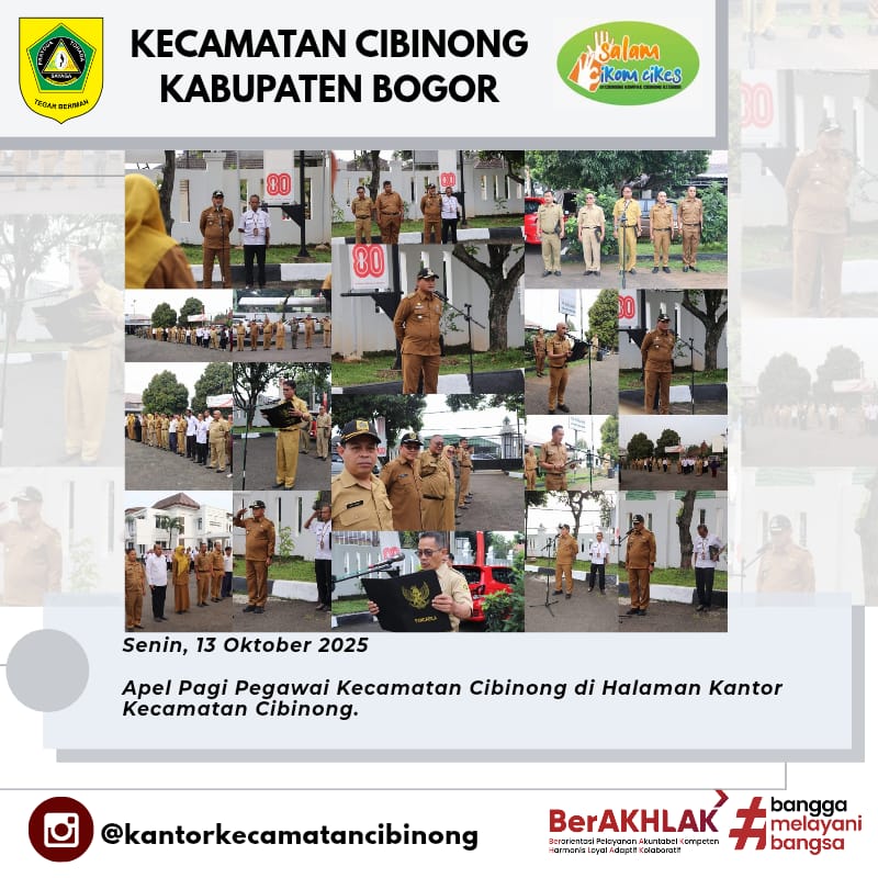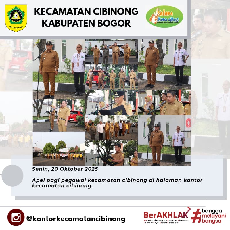 Apel pagi pegawai kecamatan cibinong di halaman kantor kecamatan cibinong.