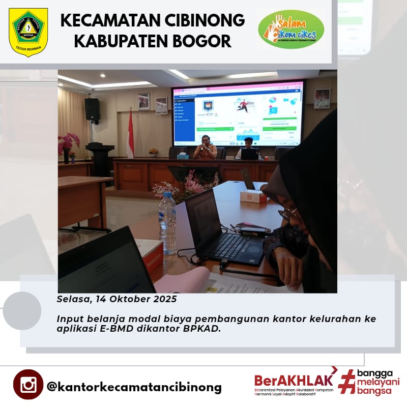 input belanja modal biaya pembangunan kantor kelurahan ke aplikasi E BMD di kantor BPKAD