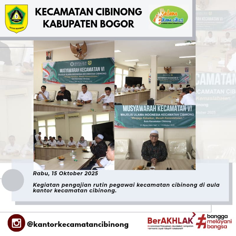 Kegiatan pengajian rutin pegawai kecamatan cibinong dia aula kantor kecamatan cibinong.