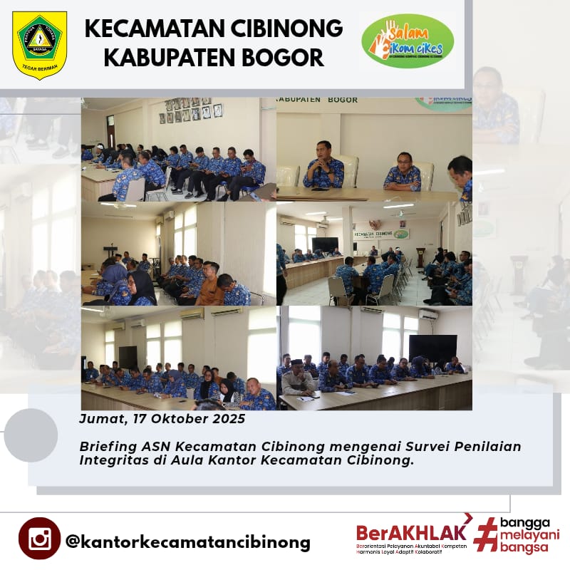 Briefing ASN Kecamatan Cibinong mengenai survei penilaian integritas di Aula kantor Kecamatan Cibinong.