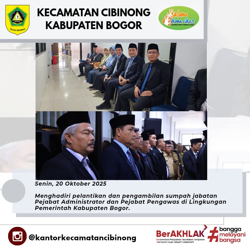 Menghadiri pelantikan dan pengambilan sumpah jabatan pejabat Administrator dan pejabat pengawas di lingkungan pemerintah kabupaten bogor.