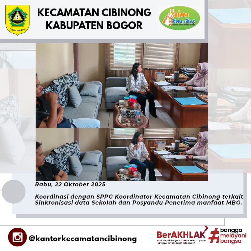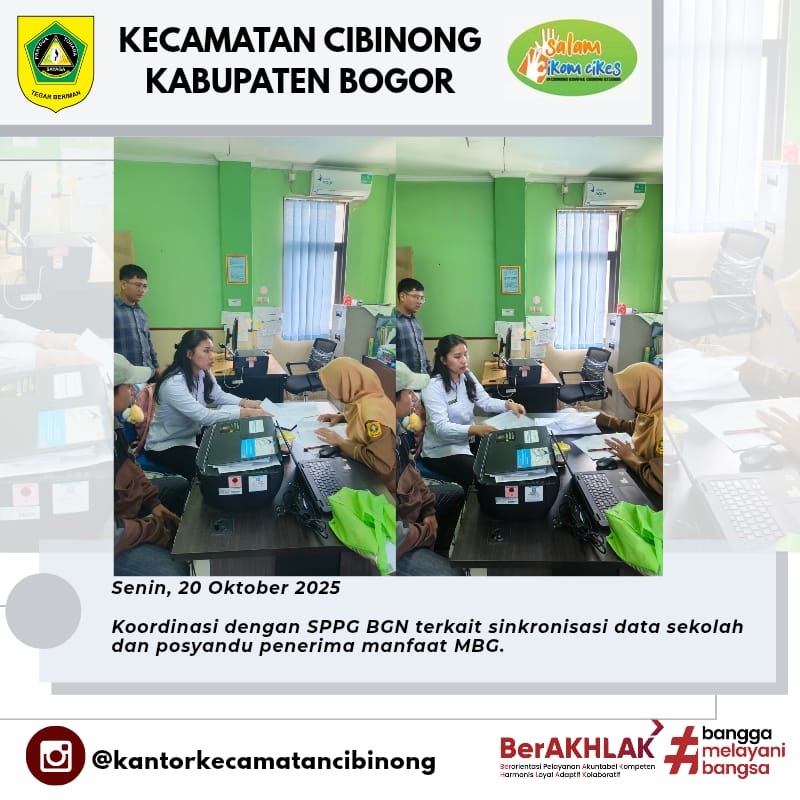 Koordinasi dengan SPPG Koordinator Kecamataan Cibinong terkait Sinkronisasi data Sekolah dan Posyandu Penerima manfaat MBG.