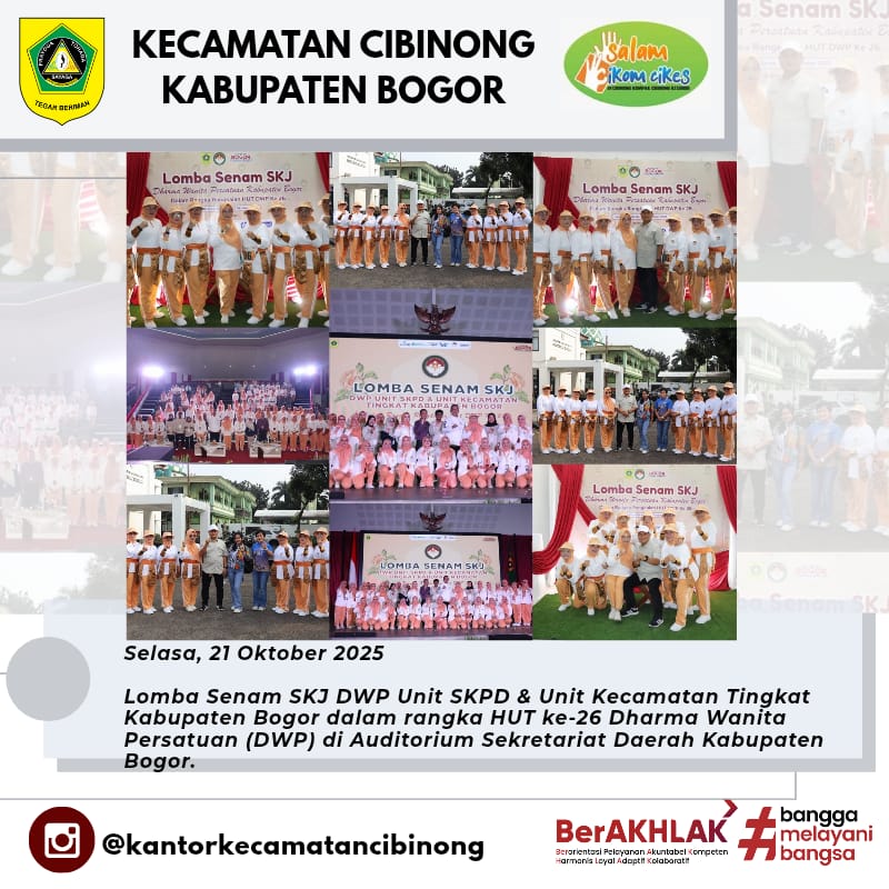Lomba Senam SKJ DWP unit SKPD & Unit Kecamatan Tingkat Kabupaten Bogor dalam rangka HUT ke-26 Dharma Wanita Persatuan (DWP) di Auditorium Sekretariat Daerah Kabupaten Bogor.