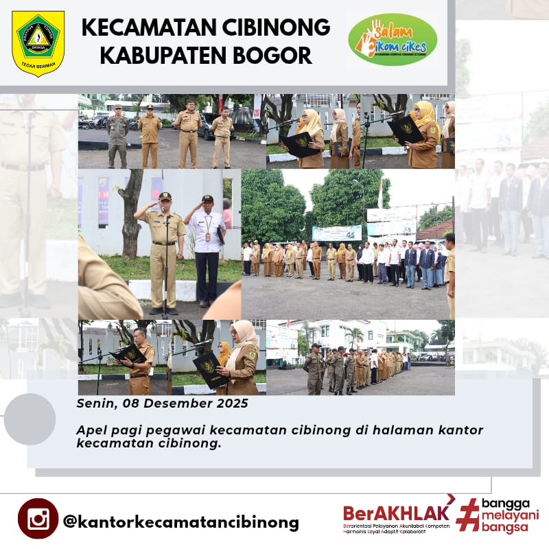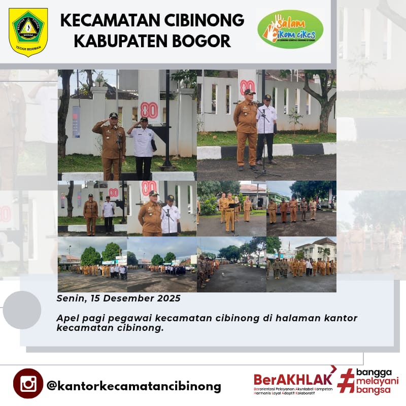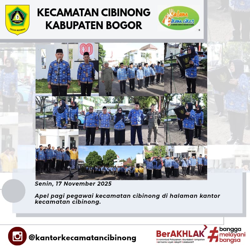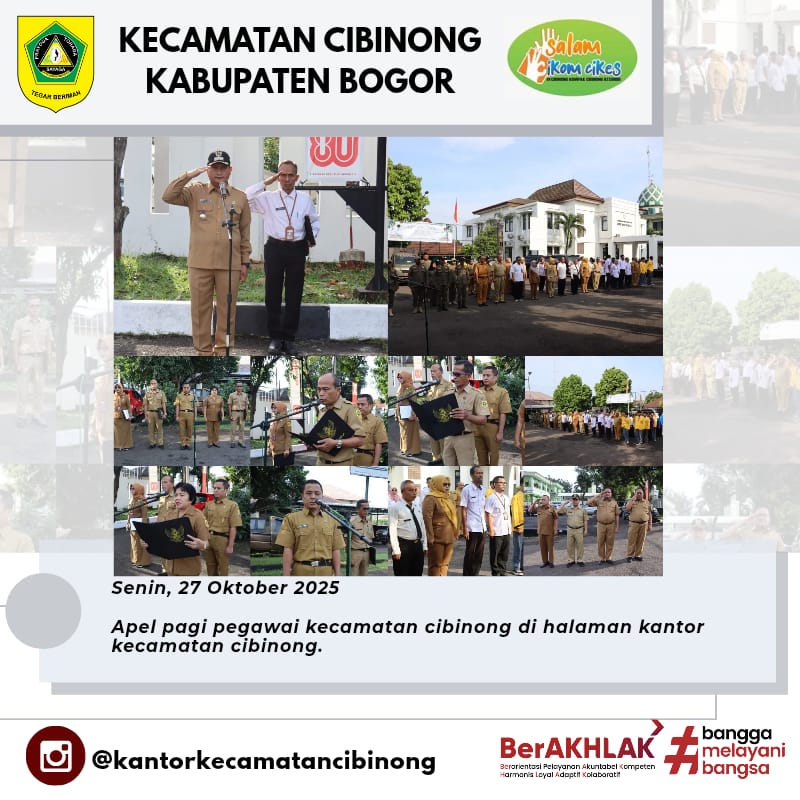 Kegiatan apel pagi pegawai kecamatan cibinong di halaman kantor kecamatan cibinong.