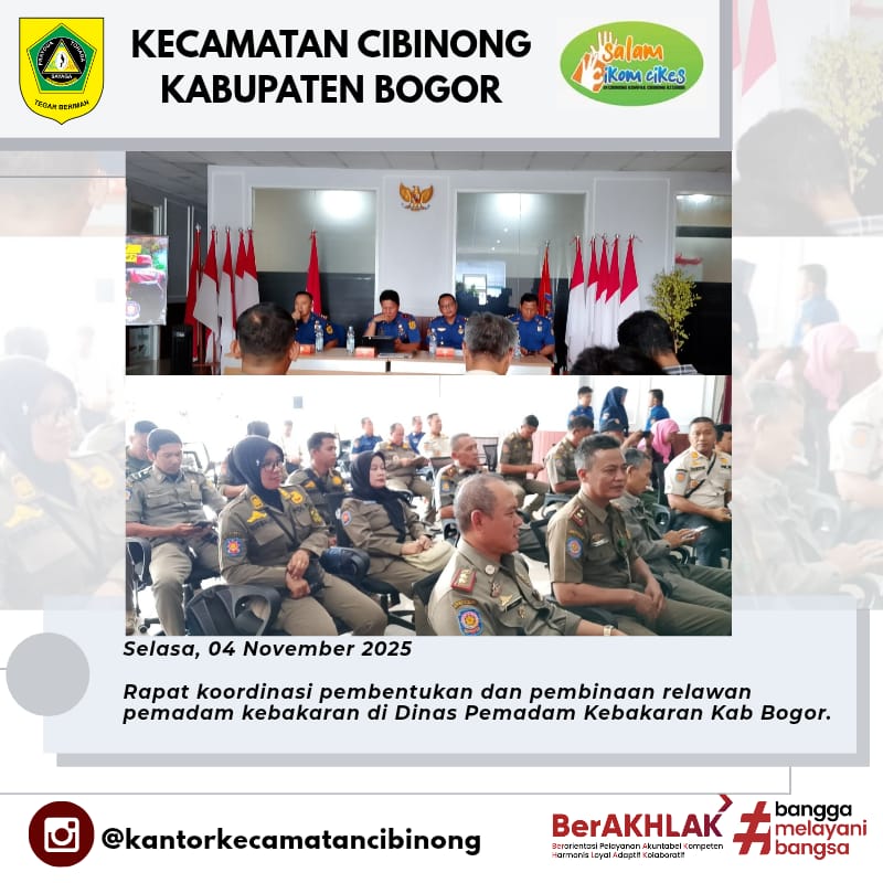 Rapat koordinasi pembentukan dan pembinaan relawan pemadam kebakaran di Dinas Pemadam kebakaran kab Bogor.