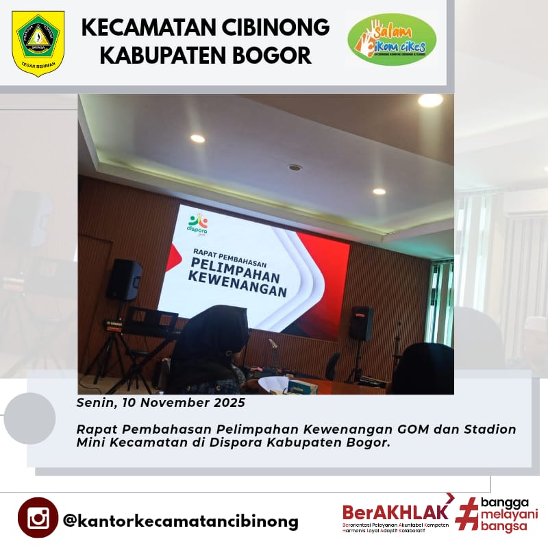Rapat Pembahasan Pelimpahan Kewenangan GOM dan Stadion Mini Kecamatan di Dispora Kabupaten Bogor.