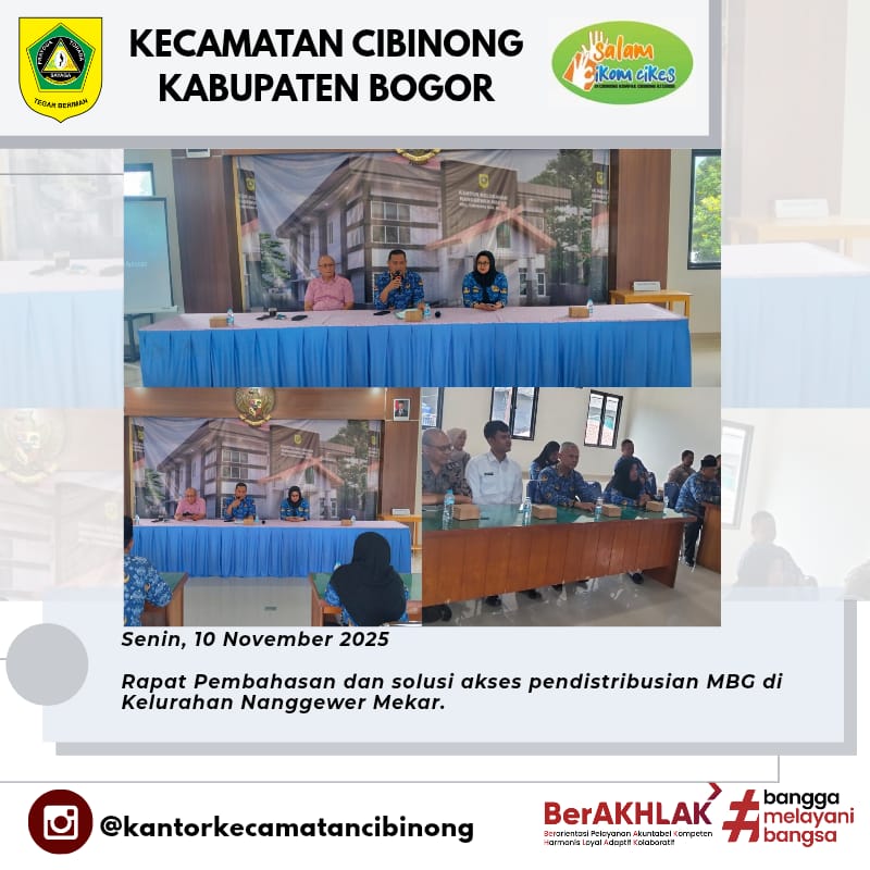 Rapat mengenai MBG bersama Kapolsek, Lurah, Kepala Sekolah dan Puskesmas di Aula Kantor Kecamatan Cibinong.