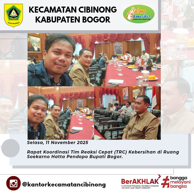 Rapat koordinasi Tim Reaksi Cepat (TRC) kebersihan di Ruang Soekarno Hatta Pendopo Bupati Bogor.