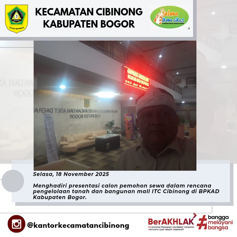 Menghadiri presentasi calon pemohon sewa dalam rencana pengelolaan tanah dan bangunan mall ITC Cibinong di BPKAD Kabupaten Bogor.