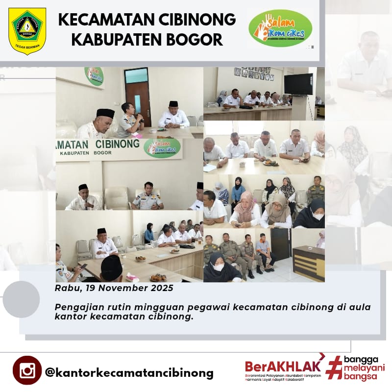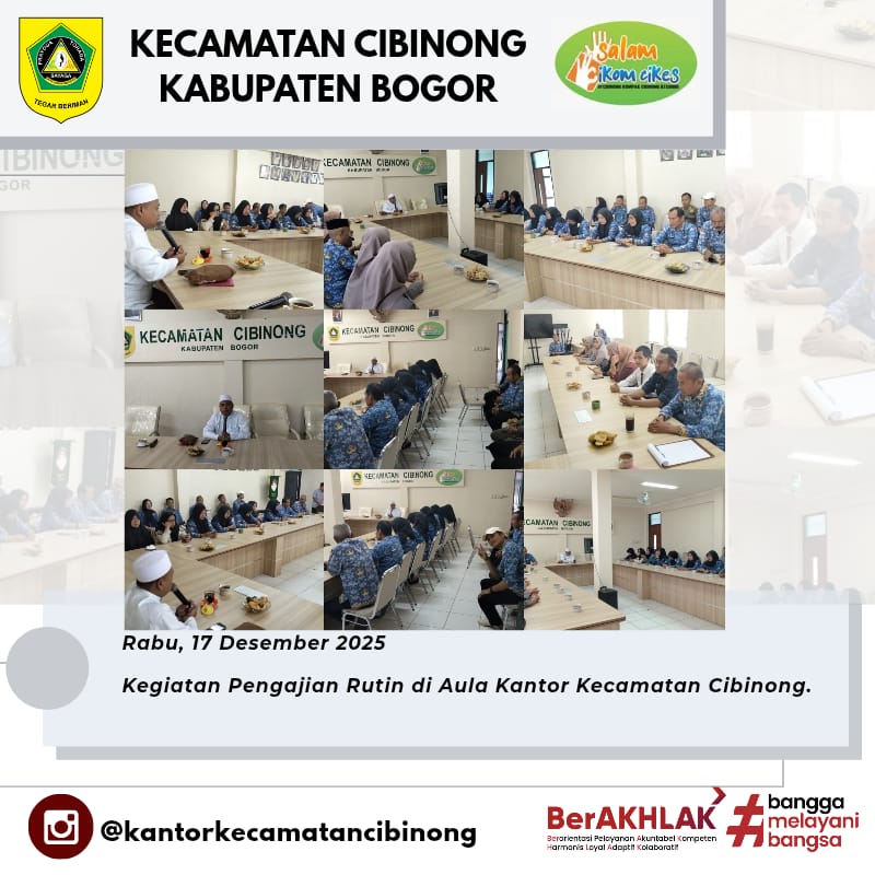 Pengajian rutin mingguan pegawai kecamatan cibinong di aula kantor kecamatan Cibinong.
