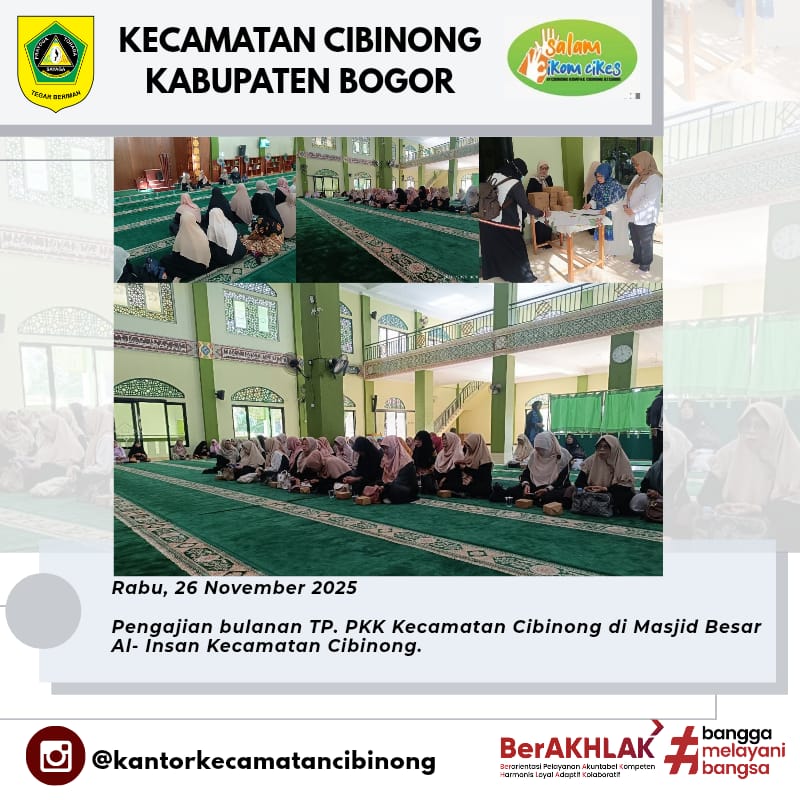 Pengajian Bulanan TP. PKK Kecamatan Cibinong di Masjid Besar Al-insan Kecamatan Cibinong.