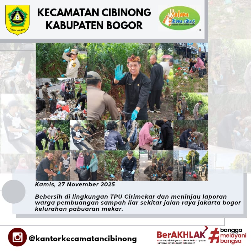 Bebersih di lingkungan TPU Cirimekar dan Meninjau laporan warga pembuangan sampah liar sekitar jalan raya bogor kelurahan pabuaran mekar