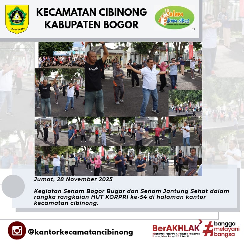 Kegiatan Senam Bogor Bugar dan Senam Jantung Sehat dalam rangka rangkaian HUT KORPRI ke - 54 di halaman kantor kecamatan cibinong