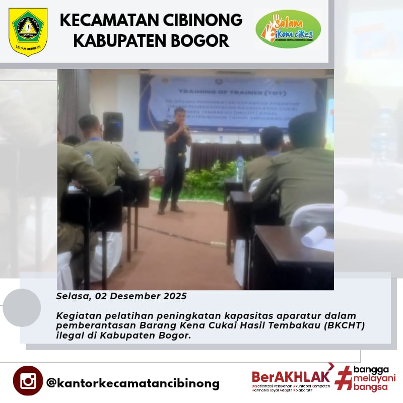 Kegiatan pelatihan peningkatan kapasitas aparatur dalam pemberantasan barang kena cukai hasil tembakau (BKCHT) ilegal di Kabupaten Bogor