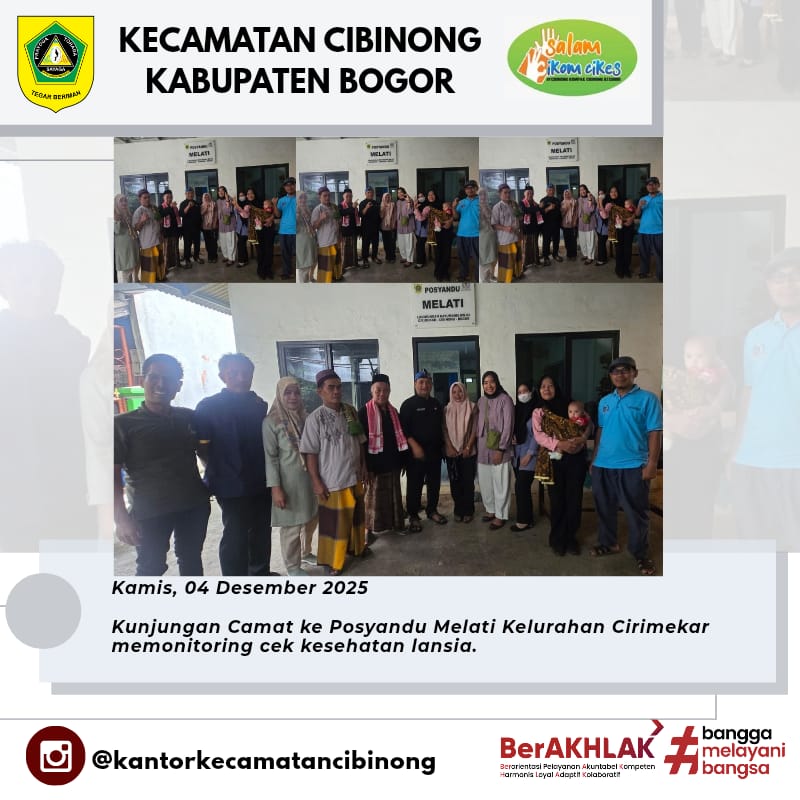 Kunjungan Camat ke Posyandu Melati Kelurahan Cirimekar memonitoring cek kesehatan lansia