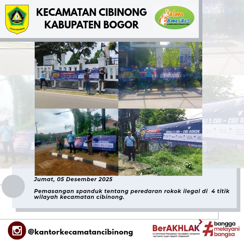 Pemasangan spanduk tentang peredaran roko ilegal di 4 titik wilayah Kecamatan Cibinong