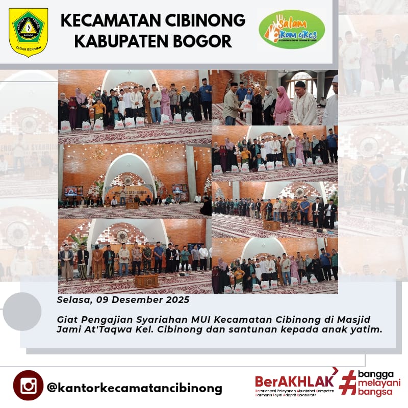 Giat Pengajian Syariahan MUI Kecamatan Cibinong di Masjid Jami AT'TAQWA Kel. Cibinong dan Santunan kepada anak yatim