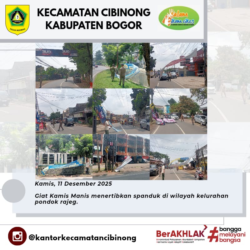 Giat Kamis Manis menertibkan spanduk di wilayah kelurahan pondok rajeg